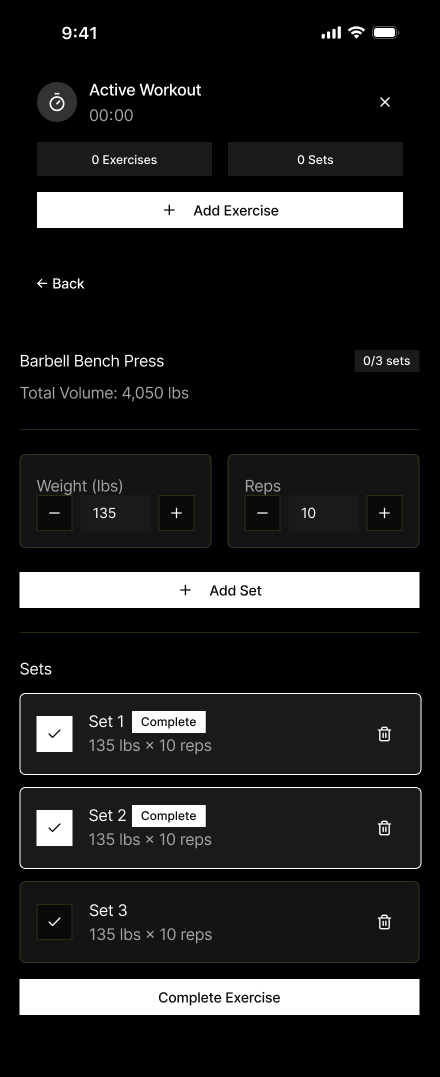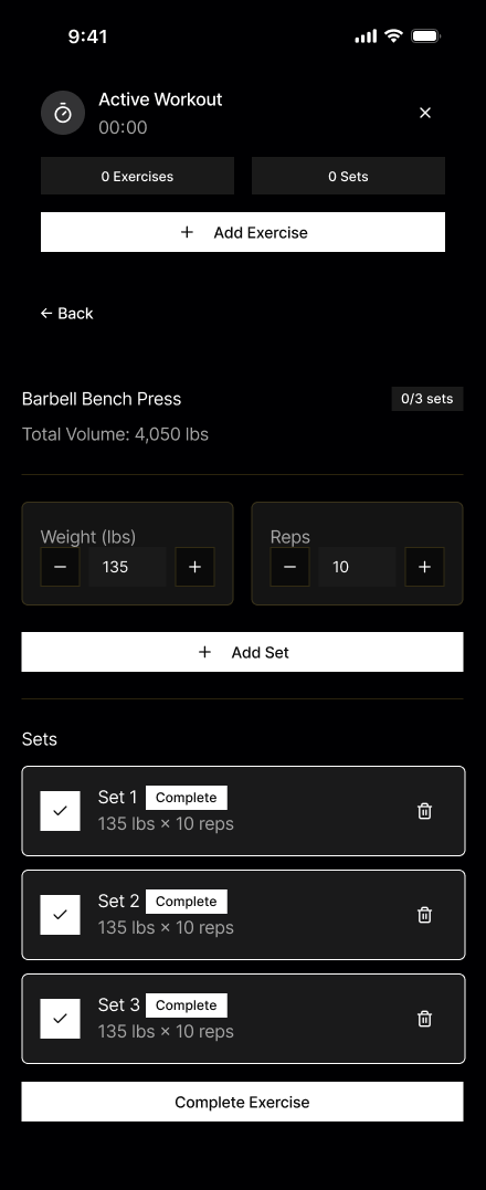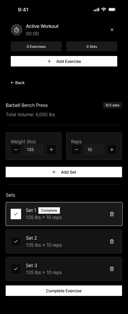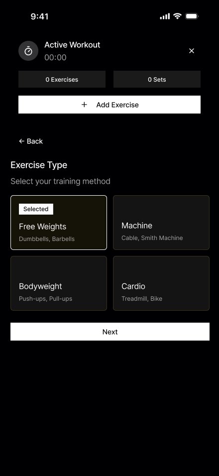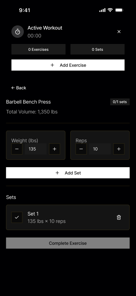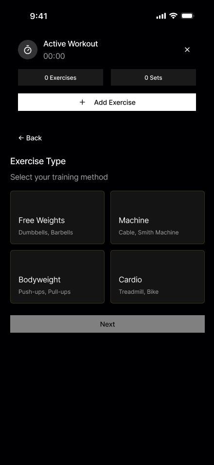 Given the time constraint of this project, I decided to pursue a MVP with minimal interface, guided by muscle group, ease of use, and elegant progress visualization.