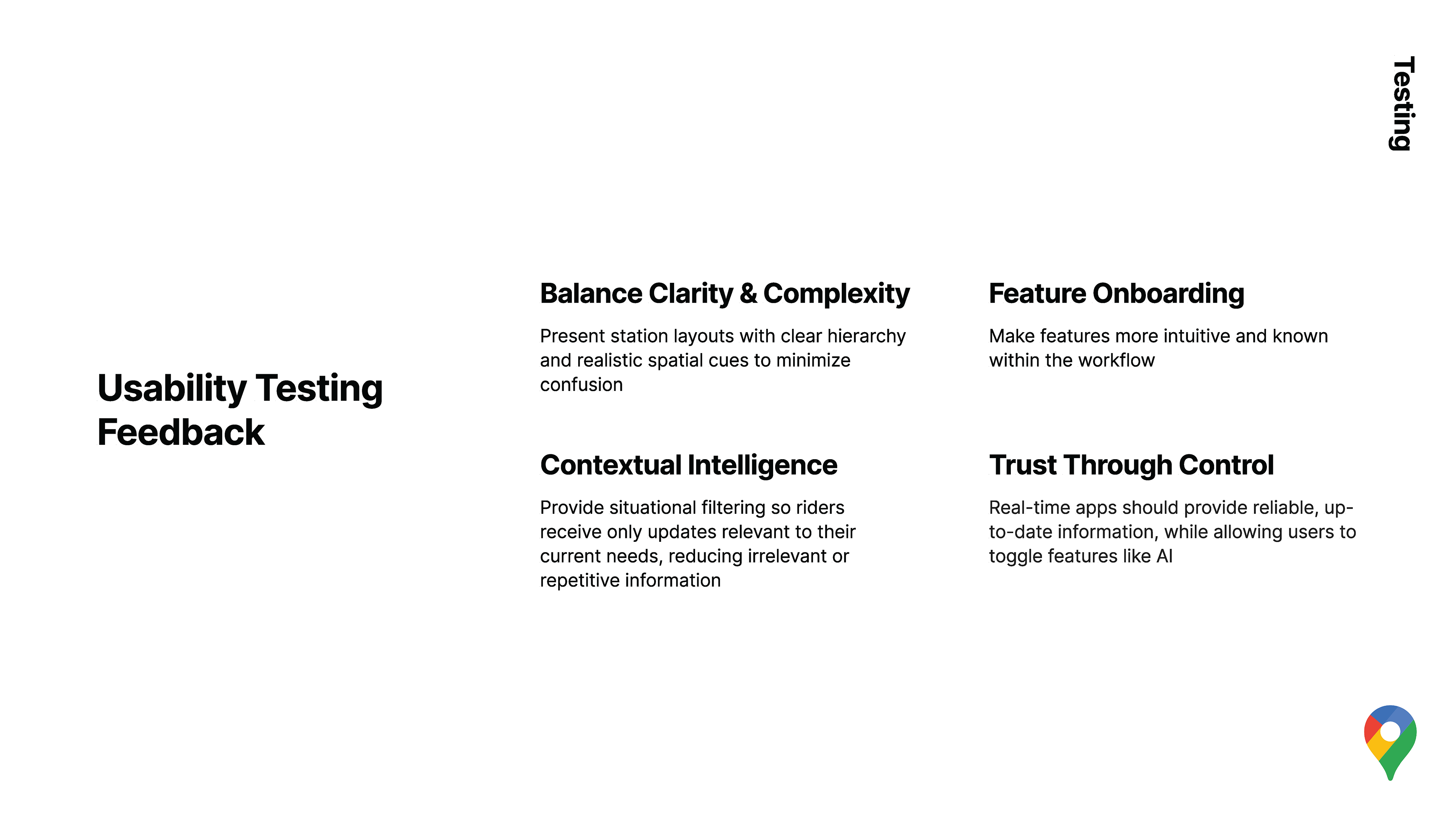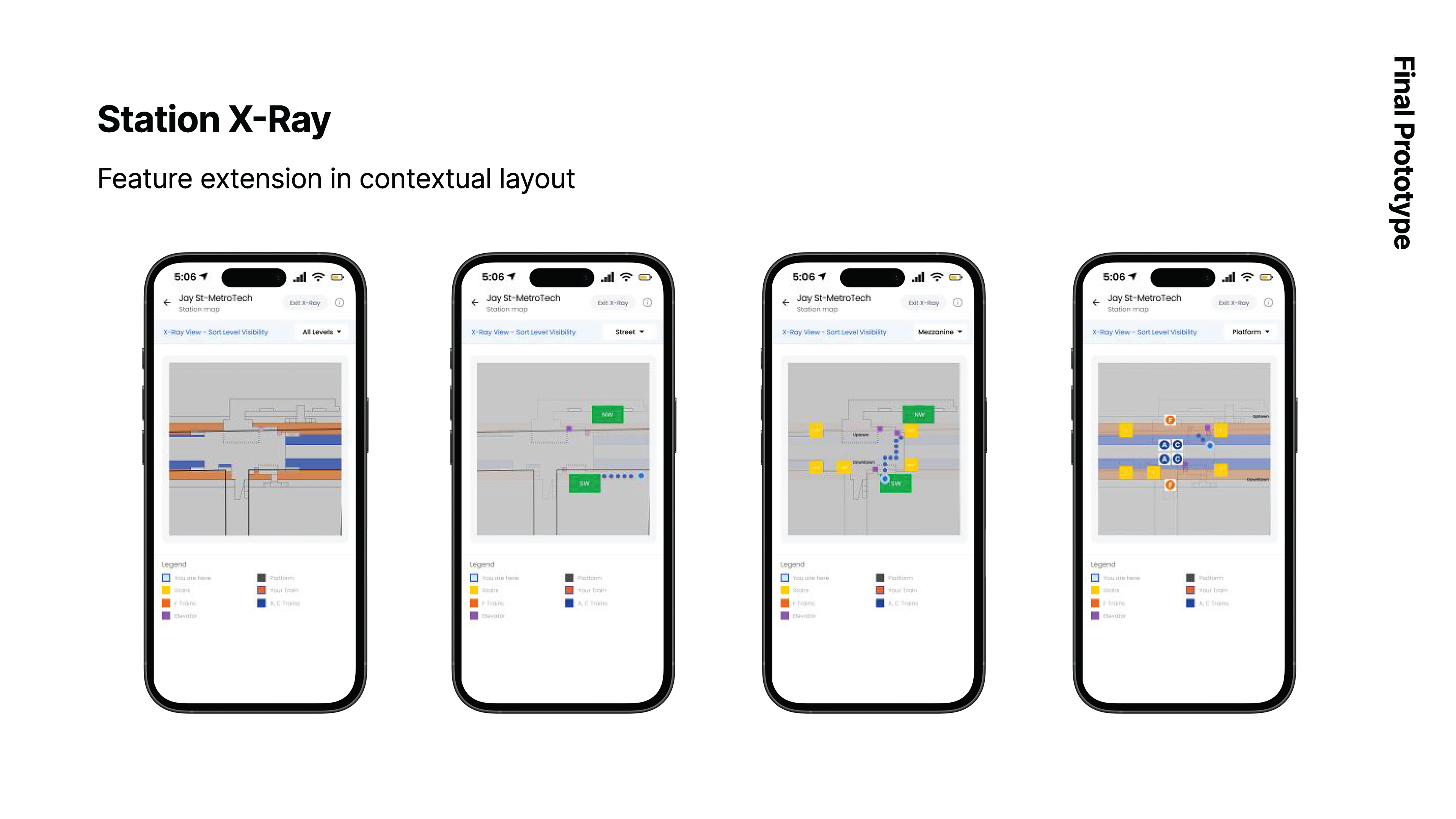I contributed across research, synthesis, user testing, interaction design, and evaluation planning, with a particular focus on in-station navigation systems, contextual wayfinding, and measuring UX impact.