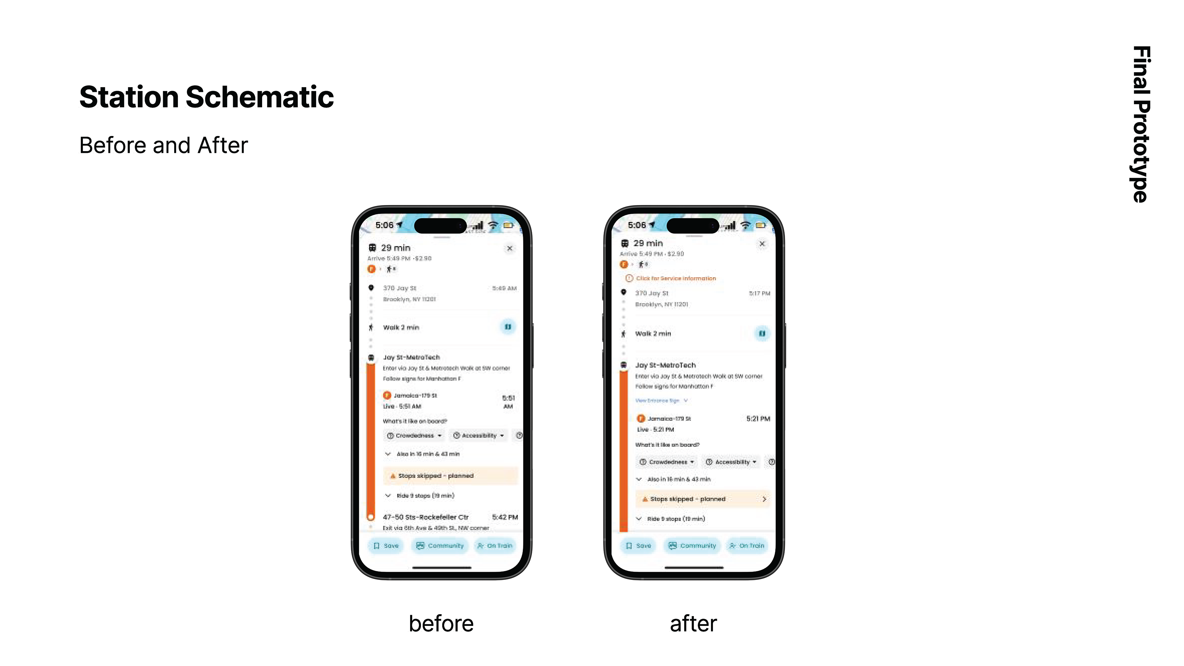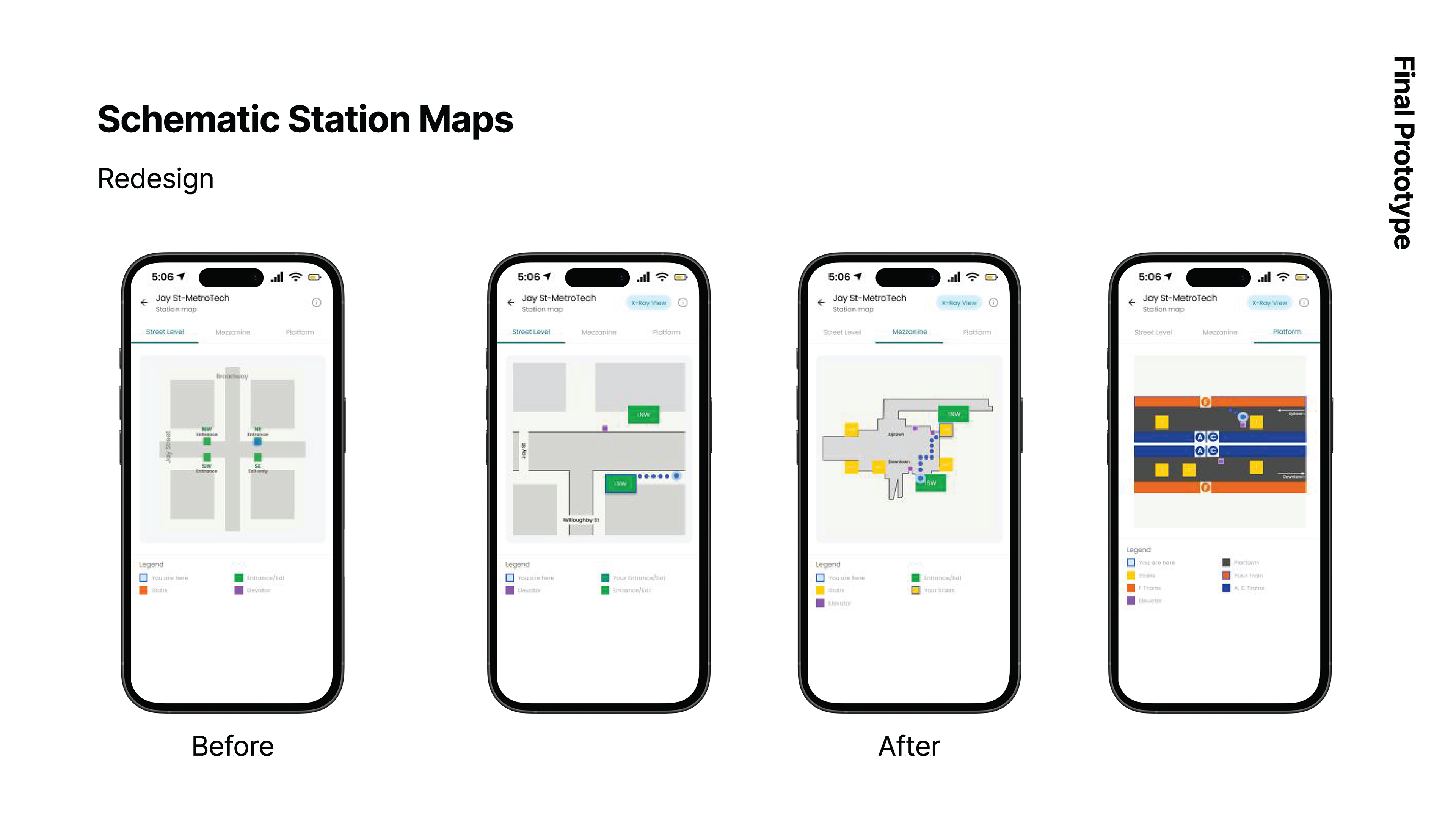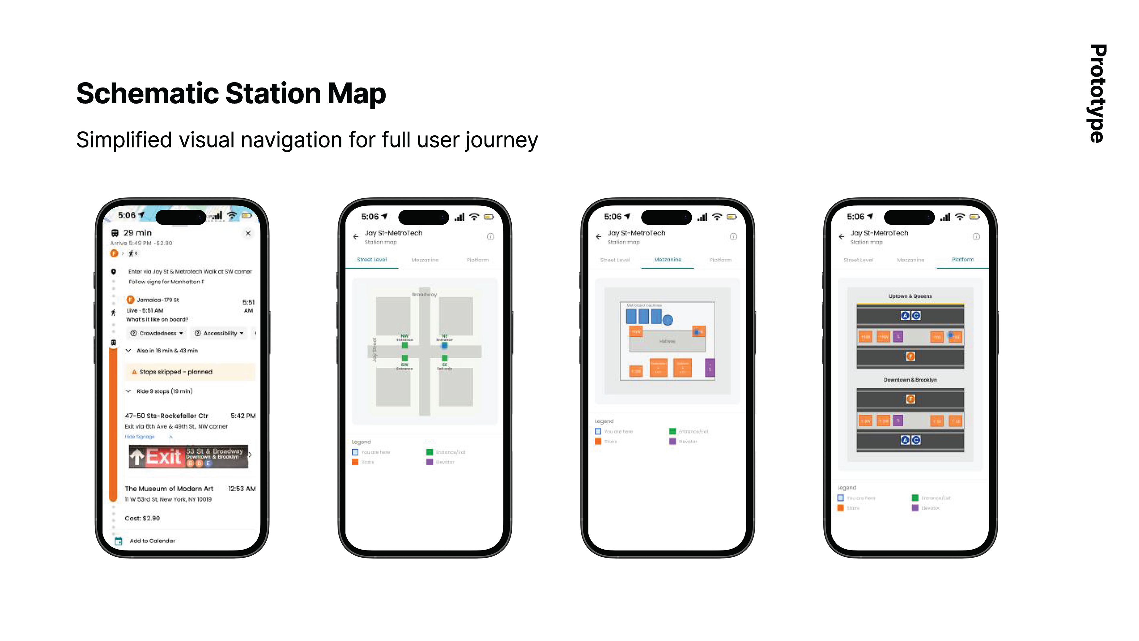 — Led the design of the intra-station schematic map system, addressing navigation breakdowns between street, mezzanine, and platform levels