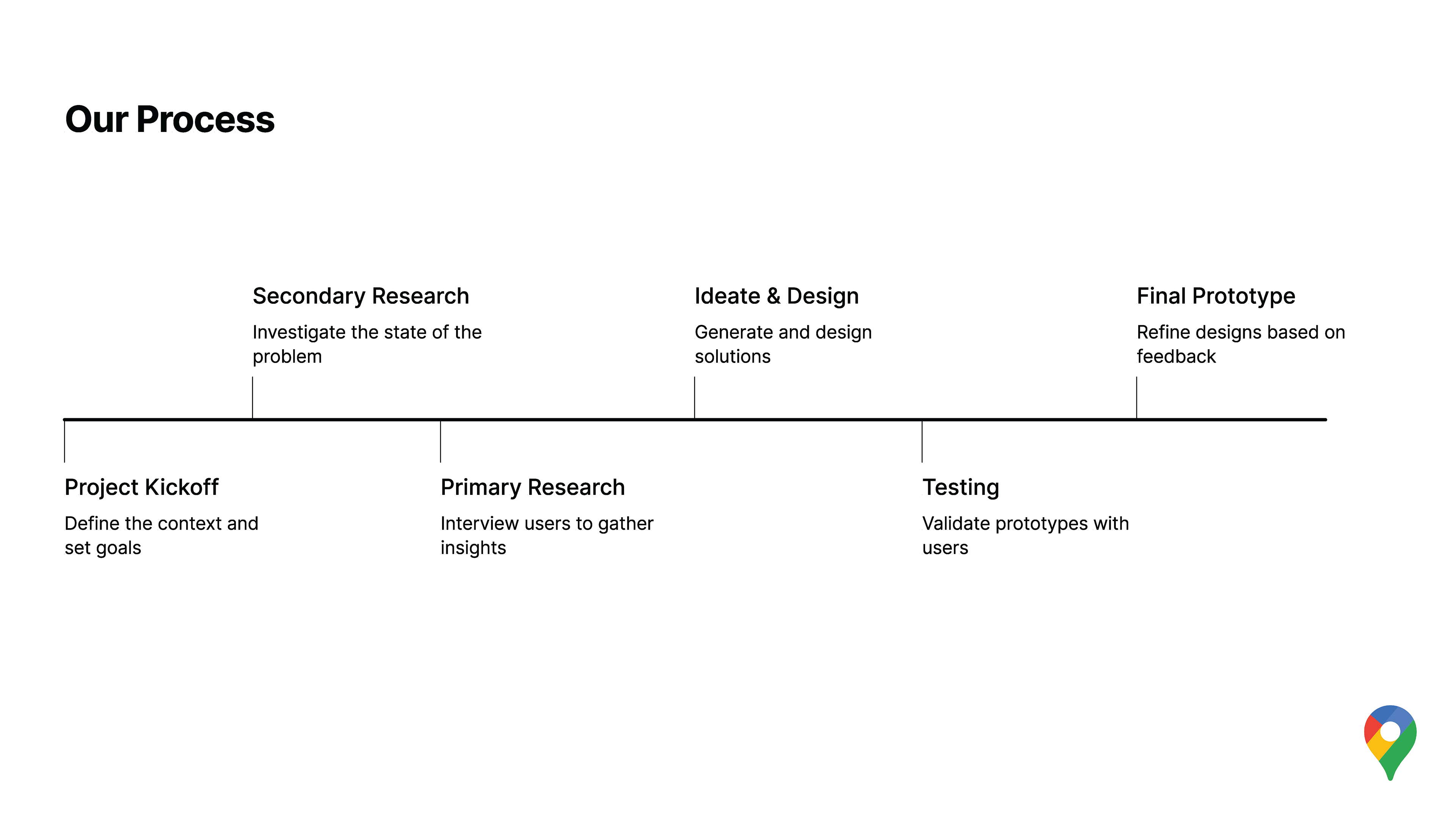 We worked within a hybrid design system, combining Google Maps UI patterns with custom components to ensure realism and feasibility.
