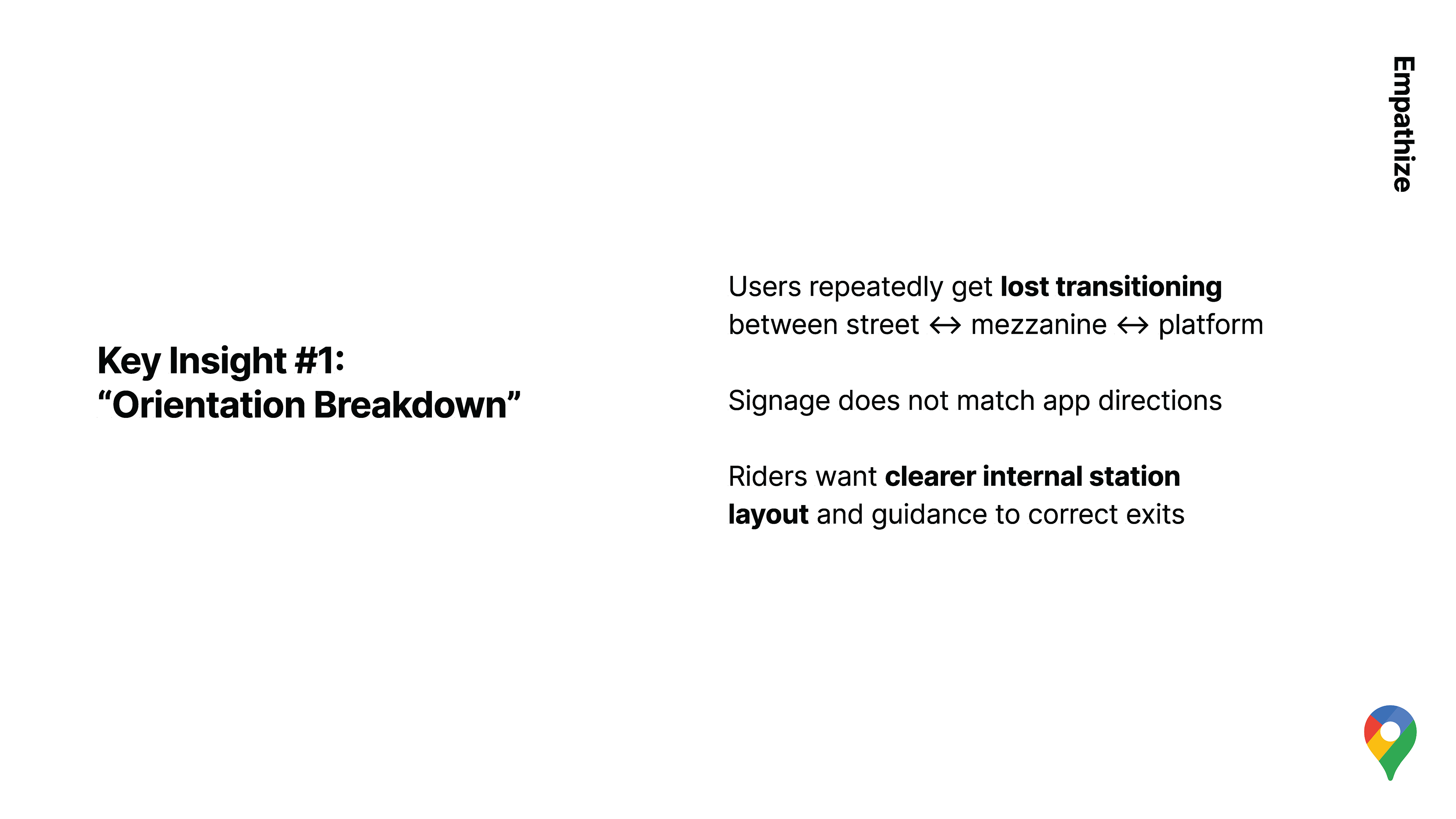 Shared Pain Points: Poor exit clarity, inconsistent wayfinding logic between stations, and cognitive overload from conflicting information sources.